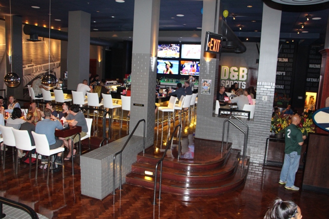 - What we like: The restaurant area has a high-energy, glitzy feeling. Sheldon can’t stop talking about the personal sound systems at the tables, perfect for hearing big plays.