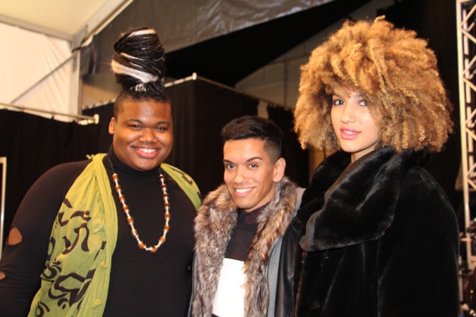 Fashion notables: Devyn Abdullah – winner of “”The Face” Season One (far left wearing black) also ,JaRed (pronounced jah-red) Cameron fashion model from the Bronx (wearing grey and black).