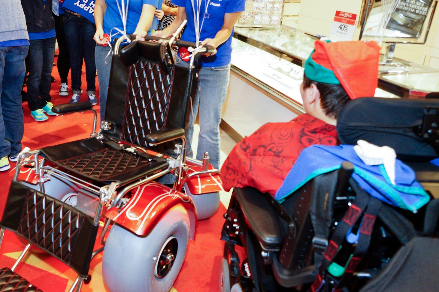 Damon is from Kaneohe, and he struggles daily with progressive muscular dystrophy, a medical condition that made him eligible for a wish from Make-A-Wish Hawaii. He wished for a beach-accessible wheelchair, one that “looked cool” in true teenager form, but mostly, he wanted the ability to roll across the sand with more ease, something he couldn’t do with his standard chair.